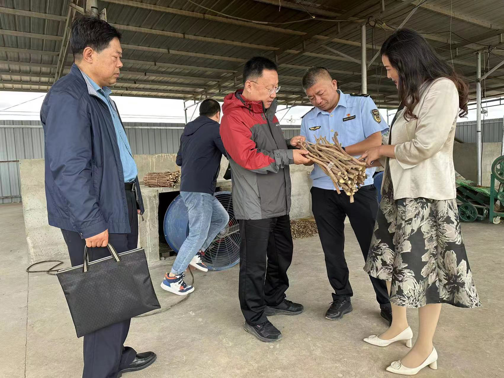 在红寺堡镇红海村,调研组结合“地产中药饮片质量监管存在问题及对策”研究课题,深入宁夏岐黄圣草农业科技有限公司产地趁鲜切制生产车间、甘草种植基地,在了解企业种植规模、种植形式后,从质量规范、人员配备、工艺标准研究、设备设施配备等方面进行现场技术帮扶,支持鼓励企业推进基地GAP认证工作,并与红寺堡区市场局开展企业报备、日常监管、专业培训等工作进行了详细对接。